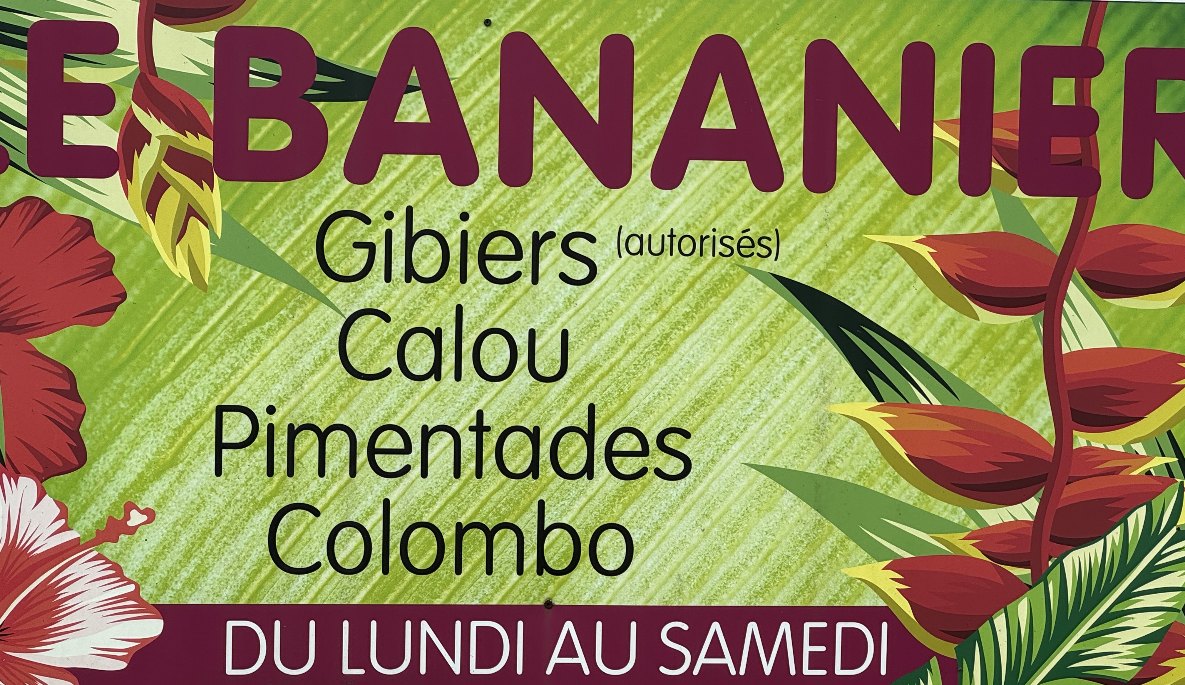 Le menu du jour au Bananier !
